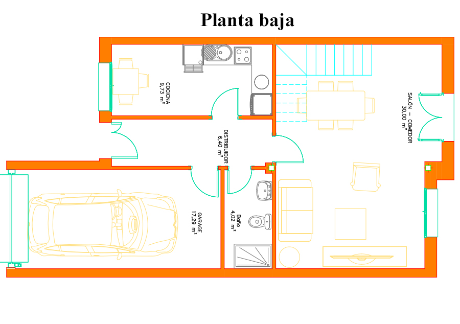 Consta de planta baja y planta primera. En la planta baja dispone de vestíbulo de entrada-salón-comedor-estar, todo junto tipo loft, con la escalera abierta en el salón, cocina, aseo y garaje cubierto para un vehículo.