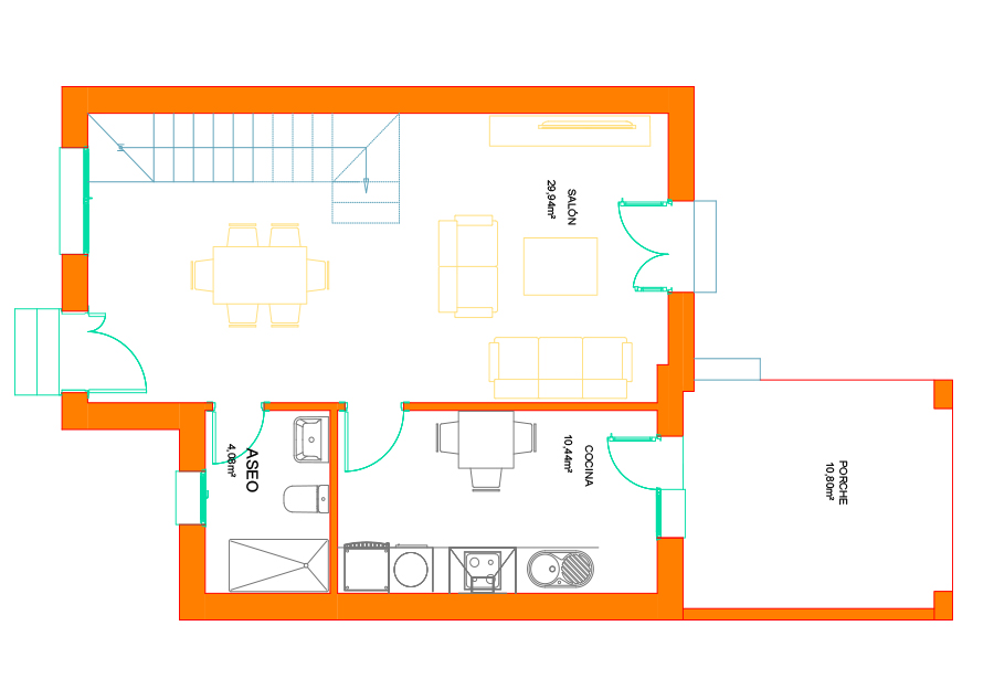 Plano de la planta baja de la vivienda con las superficies de cada estancia